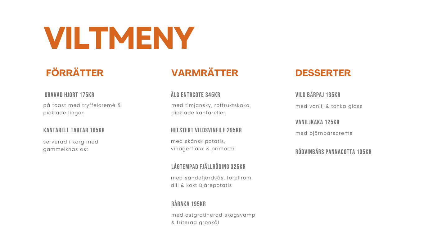 20-25 oktober utgår höstmenyn och ersätts av Viltmenyn